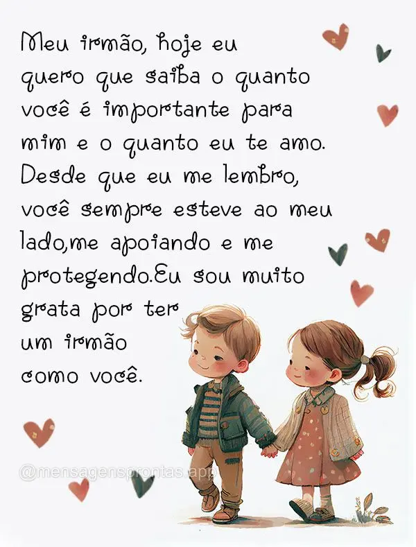 Irmãos são presentes que a vida nos dá para tornar nossa jornada mais leve e feliz. Eles são os nossos primeiros amigos, aqueles que nos acompanham desde o início e que estarão ao nosso lado para sempre. Que possamos valorizar e cultivar esse laço precioso de irmãos.