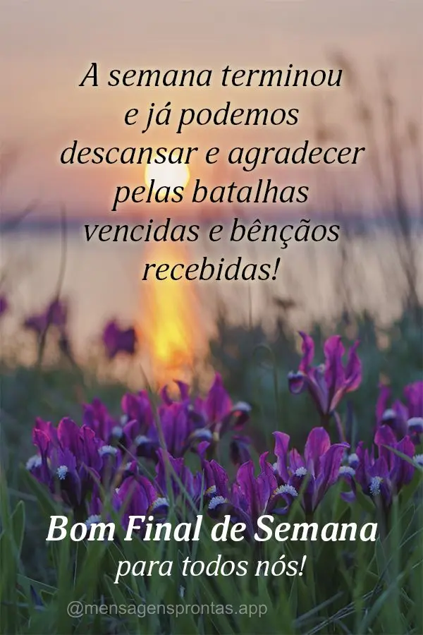 A semana terminou e já podemos descansar e agradecer pelas batalhas vencidas e bênçãos recebidas! Bom final de Semana para todos nós!